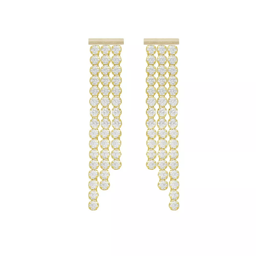 Victoria Cruz ženske minđuše od pozlaćenog srebra širine 0,20 cm i dužine 5 cm sa belim kristalom u obliku kaskadnih mini cirkona, idealne za zabave, venčanja ili posebne događaje iz kolekcije Eunoia.