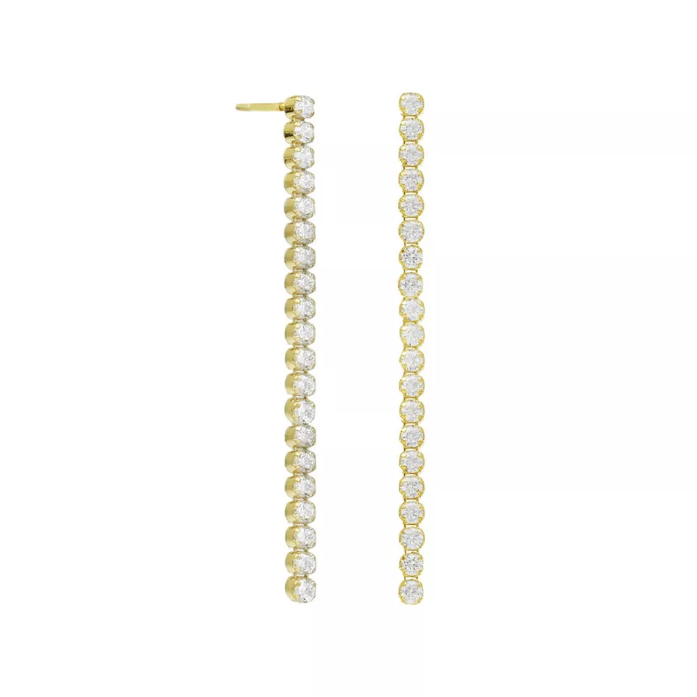 Victoria Cruz ženske minđuše od pozlaćenog srebra širine 0,20 cm i dužine 5 cm sa belim kristalom u obliku mini cirkona, idealne za zabave, venčanja ili posebne događaje iz kolekcije Eunoia.