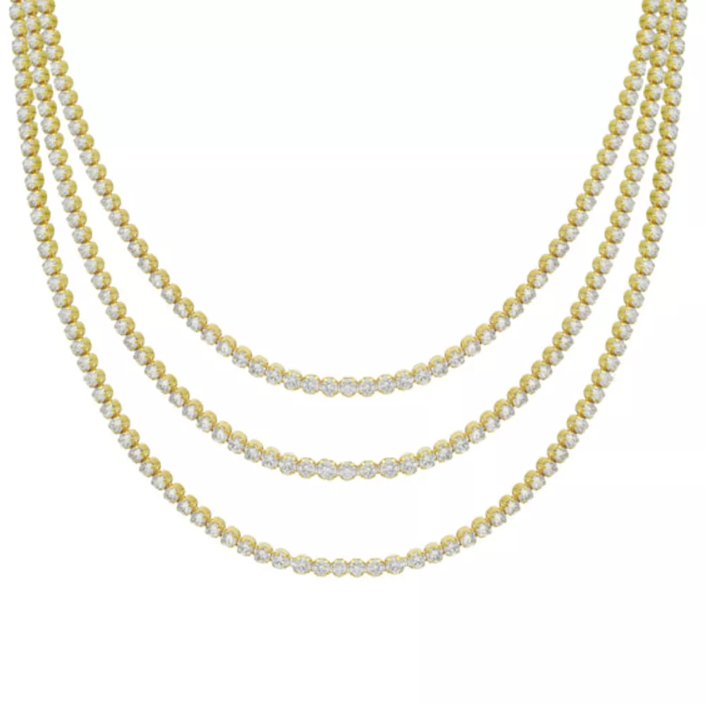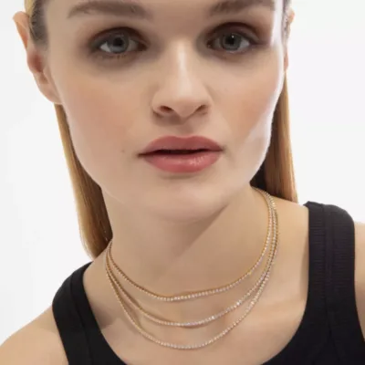 Ogrlica Victoria Cruz Halo kolekcije izrađena je od sterling srebra u zlatnoj boji i ukrašena belim kristalima. Dužina ogrlice je 45-50 cm, dok je motiv veličine 0,4×0,7 cm. Ovaj elegantan komad nakita pruža suptilan sjaj i savršen je dodatak za svaki stil.