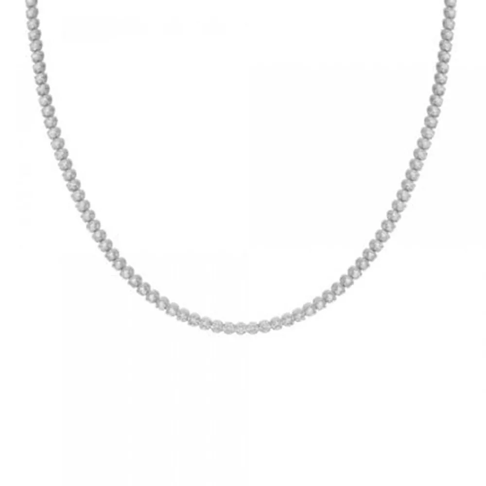 Victoria Cruz ženska srebrna kratka ogrlica sa kristalima. Dužina: 45-50 cm. Veličina motiva je 0,2×0,2 cm, prečnik alke 4 cm, i bele boje, iz kolekcije Halo.