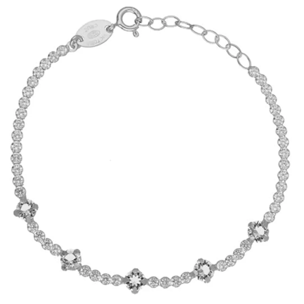 Ova elegantna ženska narukvica iz kolekcije Halo izrađena je od srebra i ukrašena blistavim Swarovski kristalima. Njen sofisticirani dizajn čini je savršenim dodatkom za svaku priliku. Dužina narukvice je 16 cm, uz dodatnih 3,5 cm za podešavanje veličine. Opremljena je papagaj kopčom, pružajući sigurnost i udobnost pri nošenju.