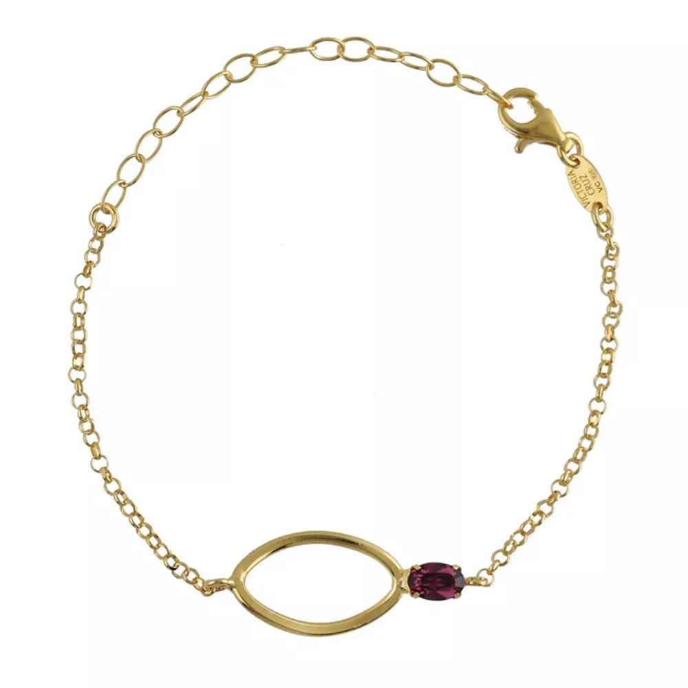 Dodaj sofisticirani sjaj uz prefinjenu Victoria Cruz žensku narukvicu sa ovalnim priveskom i Swarovski kristalom boje vina. Ova narukvica odiše klasičnim šarmom, savršena za one koji vole suptilnu eleganciju i ženstvenost sa dozom modernog stila.