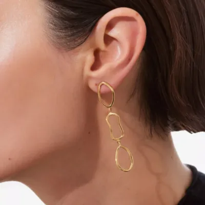 Upotpunite svoj izgled elegantnim dugim minđušama iz Prisme kolekcije. Ove minđuše su izrađene od srebra presvučenog 18kt zlatom, sa motivom veličine 6,5 x 1,3 cm. Njihov moderan i sofisticiran dizajn savršen je za isticanje vašeg stila, bilo da ih nosite u dnevnim ili večernjim prilikama.