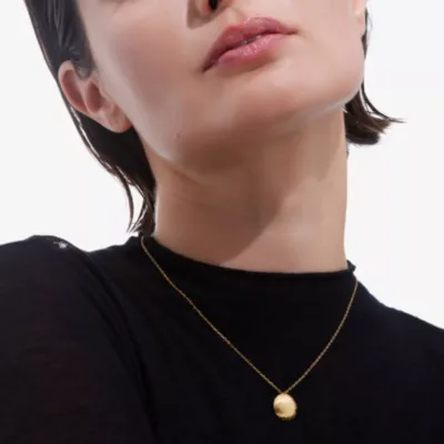 Ovaj kratak lančić od sterling srebra u zlatnoj boji iz Zoom kolekcije savršeno se uklapa u svaki modni stil. Dužina lančića je 40-45 cm, a privesak u obliku sfere ima prečnik od 1,5 cm. Elegantan i moderan, idealan za svaki dan ili posebne prilike, ovaj lančić dodaje sofisticiranost vašem izgledu.