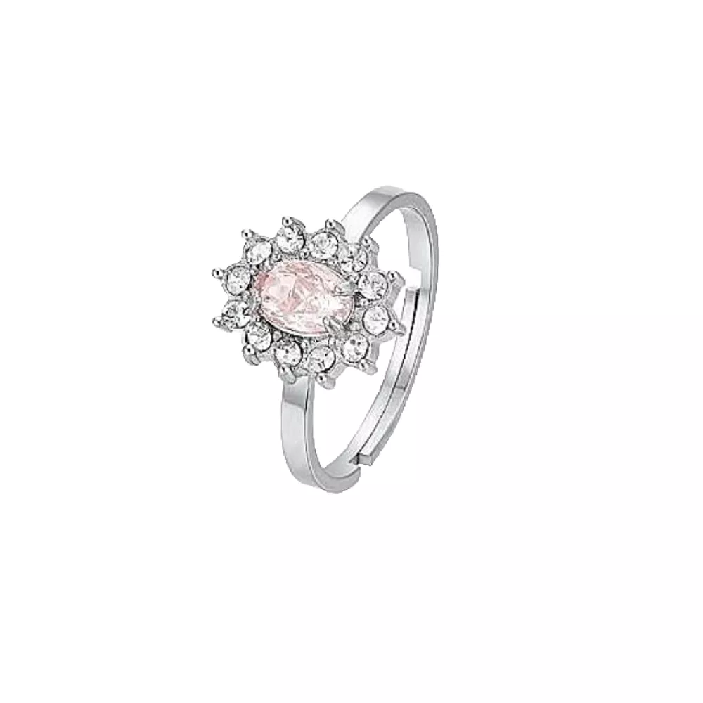 Luca Barra ženski prsten, izrađen od nerđajućeg čelika, ukrašen kristalima i roze cirkonima.