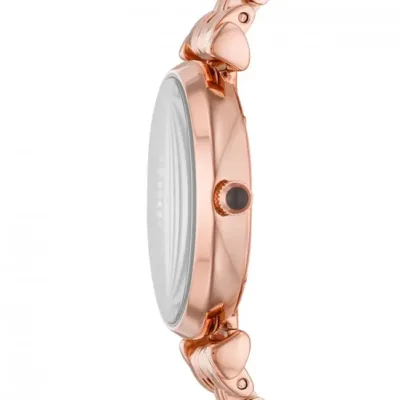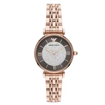 Ženski kvarcni ručni sat brenda Emporio Armani izrađen je od nerđajućeg čelika u boji roze zlata. Brojčanik je dekorisan diskretnim cirkonima. Predstavlja pravi izbor za dame sa stilom.