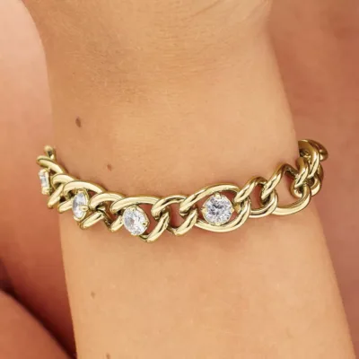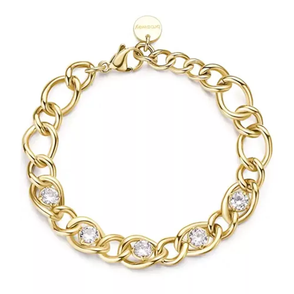 BROSWAY Ribbon ženska narukvica od nerđajućeg čelika sa linkovima i providnim cirkonima u zlatnoj boji će se ukopiti u baš svaki stil.