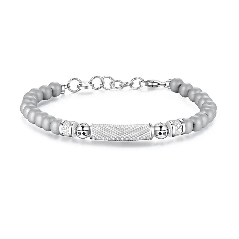 Muška narukvica od nerđajućeg čelika iz kolekcije Exodus u kombinaciji sa privescima od brušenog i poliranog čelika.