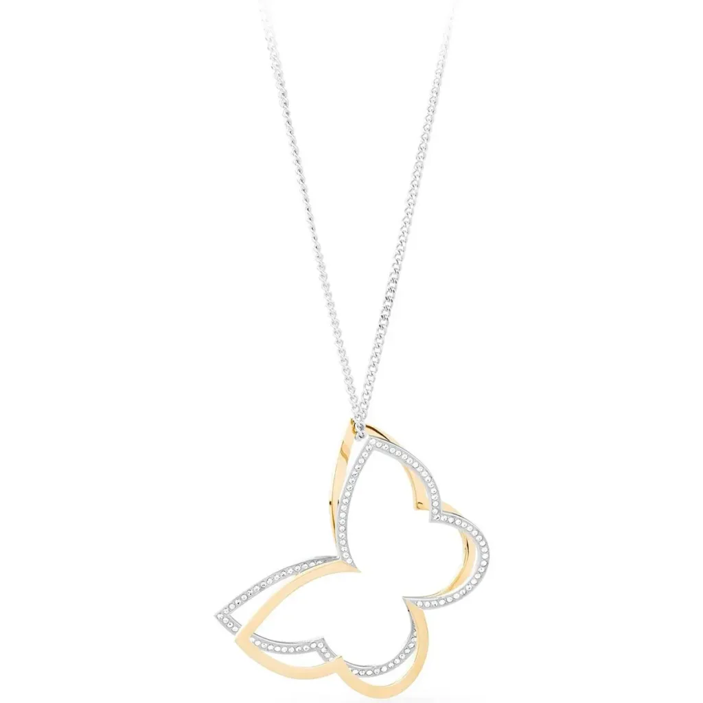 Moderna ženska ogrlica brenda Brosway, iz kolekcije Frame. Karakteriše je privezak u formi dva spojena leptira od koga je jedan optočen kristalima koji doprinose atraktivnosti ovog modela. Izrađena je od najkvalitetnijeg čelika 316L što je čini pogodnom za svakodnevno nošenje.