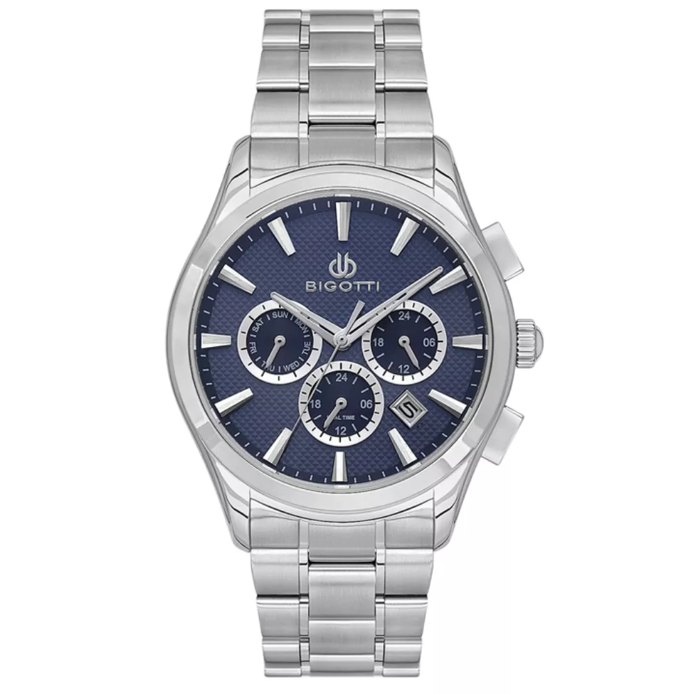 Muški sat Bigotti kombinuje stil i funkcionalnost uz pouzdan kvarcni mehanizam i kućište veličine 42mm. Čelična narukvica u boji srebra pruža udobno i sigurno nošenje. Dvostruki sloj na plavom brojčaniku sa pravim indeksima daje modernu i sofisticiranu estetiku. Vodootpornost do 5 bara (50 metara) čini ga idealnim izborom za svakodnevne aktivnosti, spajajući izdržljivost i eleganciju.
