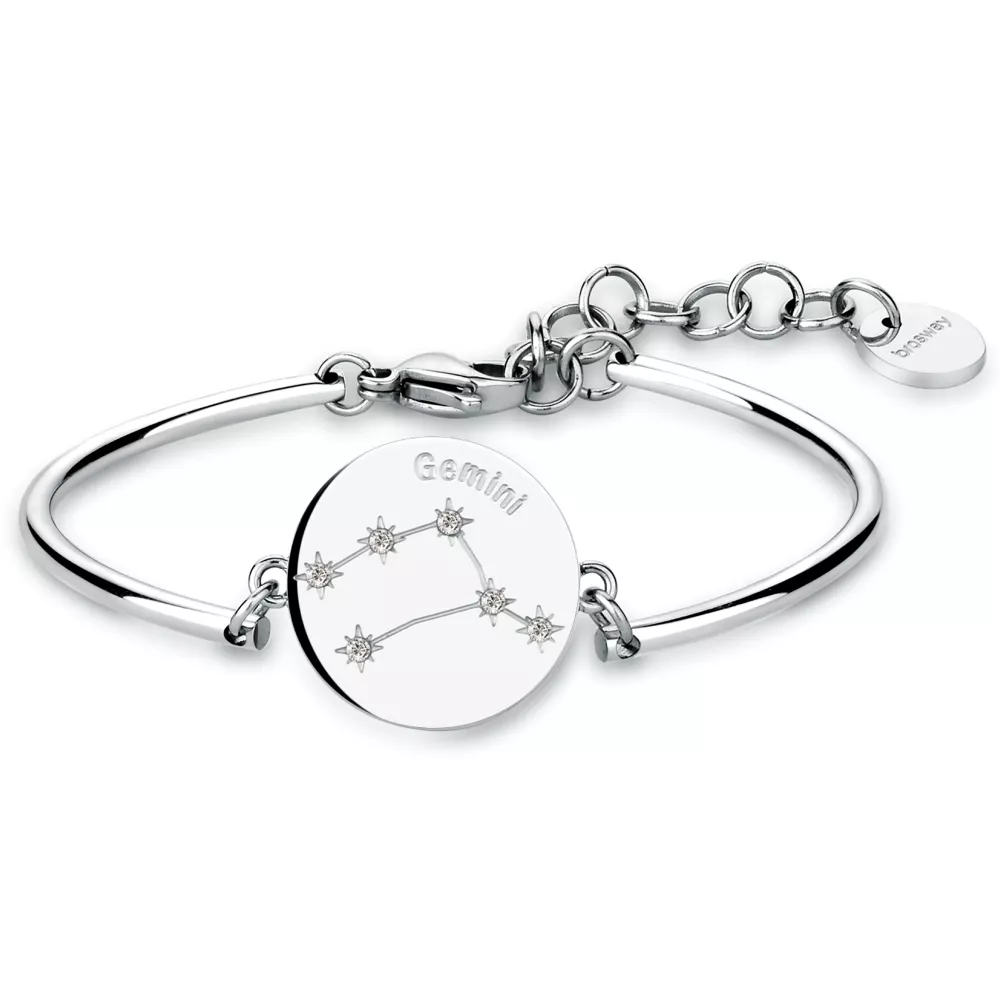 Moderna ženska narukvica brenda Brosway, iz kolekcije Chakra. Karakteriše je čvrsta forma, kao i privezak u kombinaciji sa Swarovski kristalima i ugraviranim sazvežđem horoskopskog znaka Blizanac. Osobe rođene u ovom znaku su po prirodi radoznale, vole da putuju i traže avanture i nova iskustva. Komunikativnost je ključna osobina šarmantnog Blizanca koji voli da bude okružen ljudima i deli ideje.