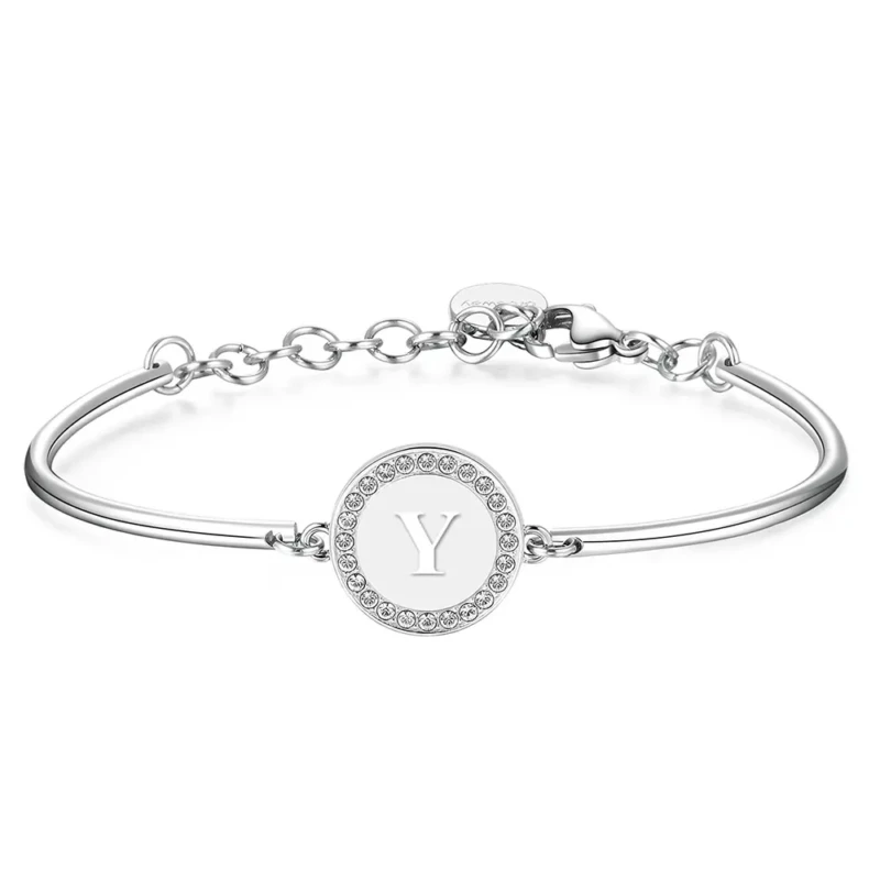 Moderna ženska narukvica brenda Brosway, iz kolekcije Chakra. Karakteriše je čvrsta forma, kao i privezak u kombinaciji sa Swarovski kristalima i ugraviranim slovom Y.
