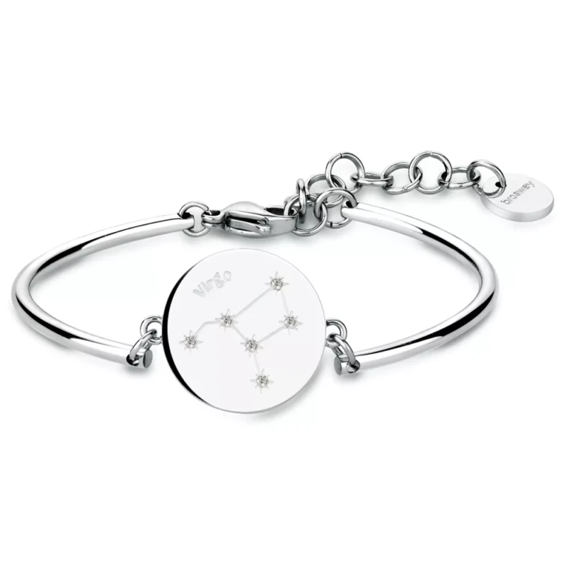 Moderna ženska narukvica brenda Brosway, iz kolekcije Chakra. Karakteriše je čvrsta forma, kao i privezak u kombinaciji sa Swarovski kristalima i ugraviranim sazvežđem horoskopskog znaka Devica. Osobe rođene u ovom znaku su racionalne i logične. Mirne, neumoljive i rezervisane, Device oprezno i pažljivo razmišljaju o svemu pre nego bilo šta učine.