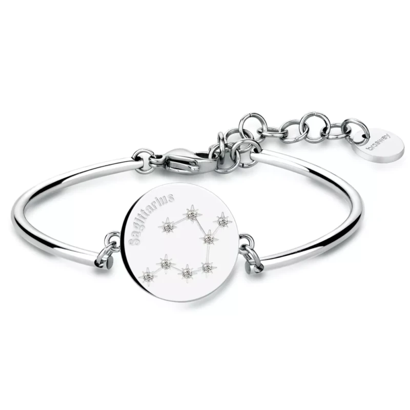 Moderna ženska narukvica brenda Brosway, iz kolekcije Chakra. Karakteriše je čvrsta forma, kao i privezak u kombinaciji sa Swarovski kristalima i ugraviranim sazvežđem horoskopskog znaka Strelac. Osobe rođene u ovom znaku vole slobodu i nezavisnost. Srec´ni i zabavni sa snažnim smisalom za humor, Strelčevi lako sklapaju prijateljstva.