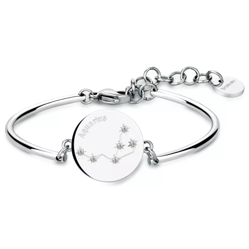 Moderna ženska narukvica brenda Brosway, iz kolekcije Chakra. Karakteriše je čvrsta forma, kao i privezak u kombinaciji sa Swarovski kristalima i ugraviranim sazvežđem horoskopskog znaka Vodolija. Strpljive i tolerantne, Vodolije vole da sklapaju nova prijateljstva. Slatke i osetljive, ovi sanjari su idealisti.