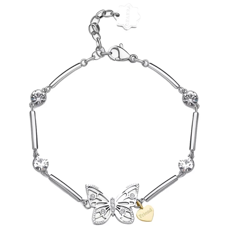 Brosway ženska narukvica od nerđajućeg čelika u boji srebra sa simbolom leptira i natpisom "friend". Dužina: 18,5 cm