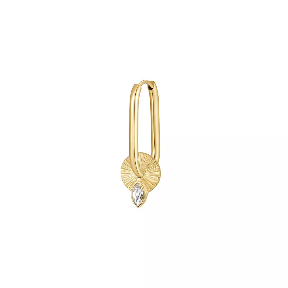 Jedna ženska minđuša brenda Brosway iz kolekcije Chakra od čelika u boji zlata sa okruglim priveskom na kojem se nalazi kristal.