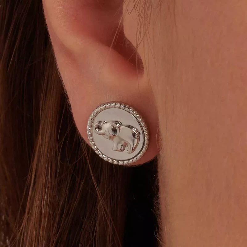 Brosway Chakra ženske minđuše od nerđajućeg čelika u boji srebra u obliku kruga sa detaljem slona. Veličina od 12mm