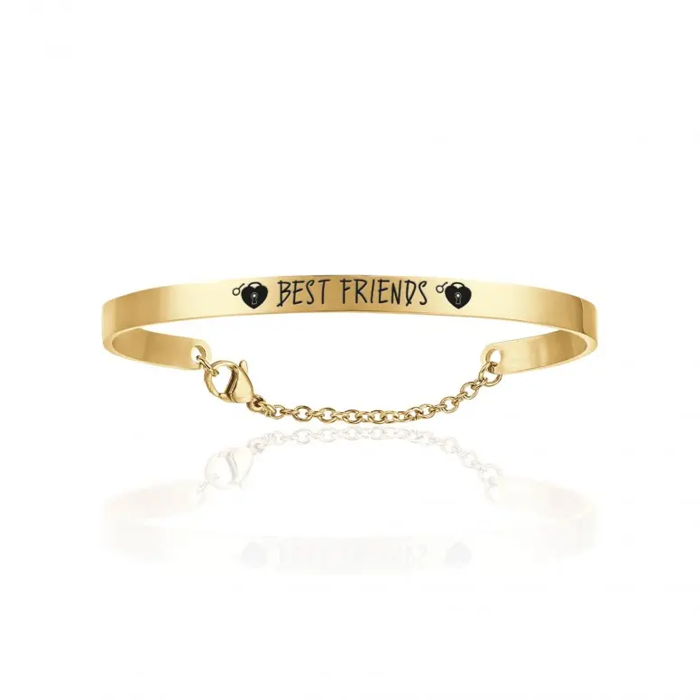 Ženska narukvica brenda Lucca Barra izrađena od hiruškog čelika. Karakteriše je moderan dizajn. Izgraviran natpis ''najbolji prijatelji'', čini ovu narukvicu u boji žutog zlata posebnom i pogodnom na svakodnevno nošenje.