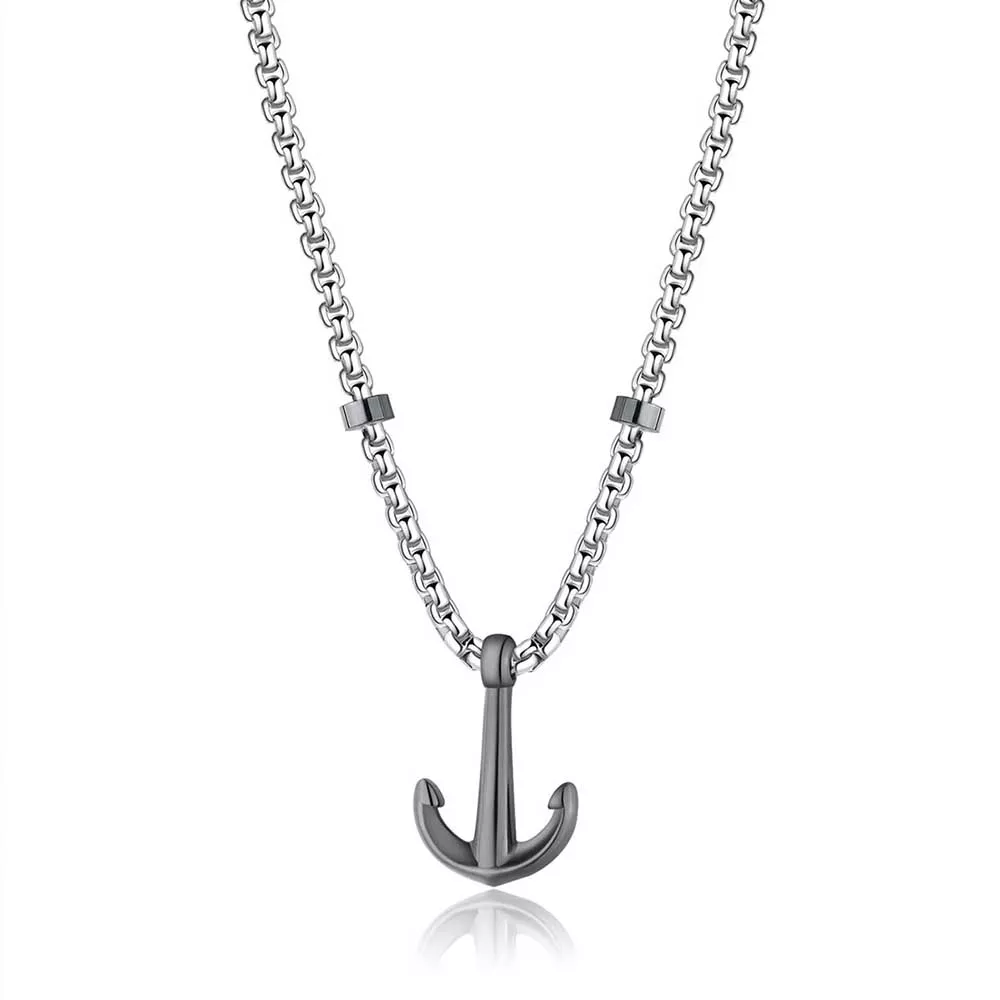 Brosway Poseidon muška ogrlica od nerđajućeg čelika u boji srebra sa priveskom sidra sa prevlakom od rutenijuma.