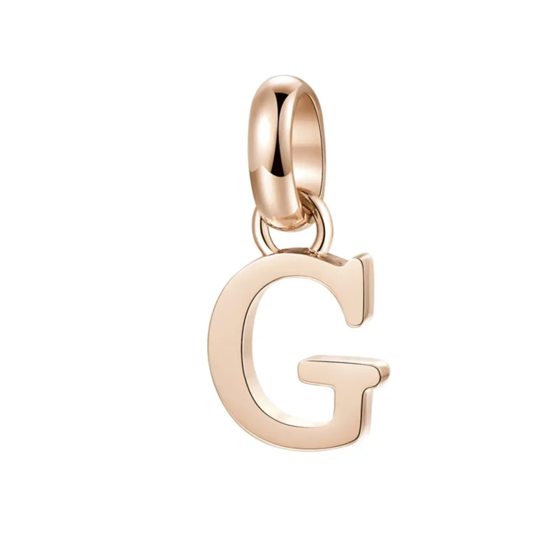 Ženski privezak od najfinijeg hirurškog čelika sa PVD premazom u roze gold boji, latinično slovo G.