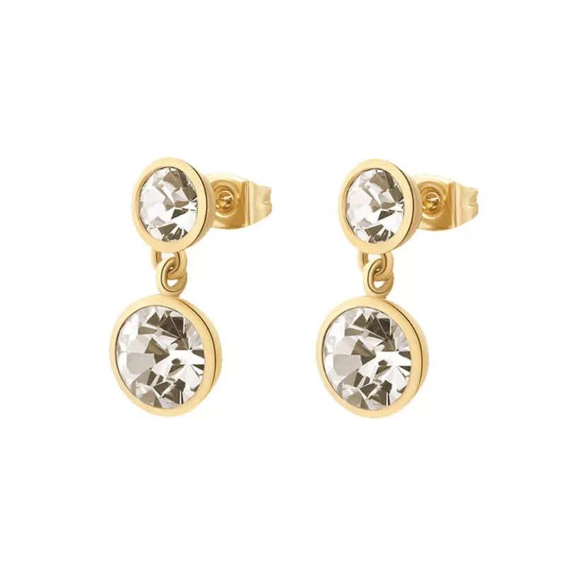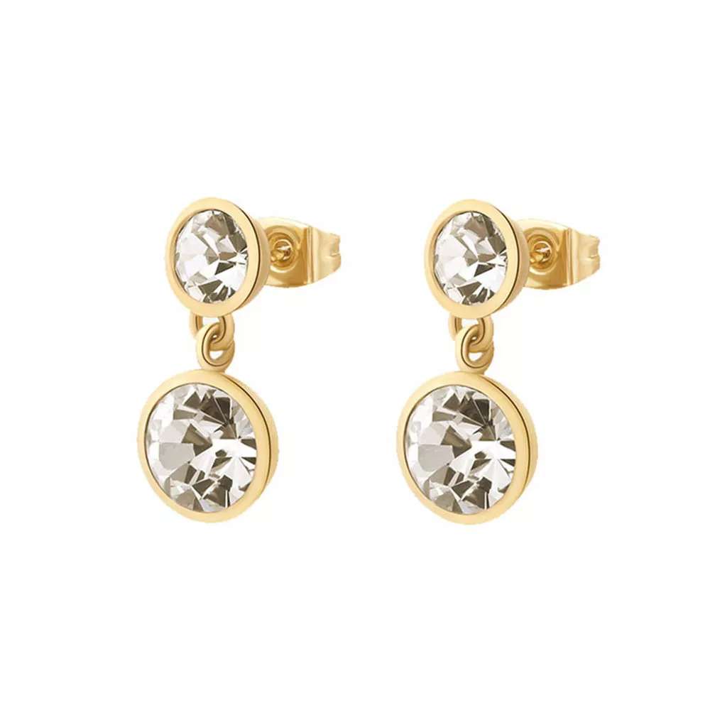 Brosway Symphonia ženske minđuše od nerđajućeg čelika u zlatnoj boji sa providnim cirkonima.