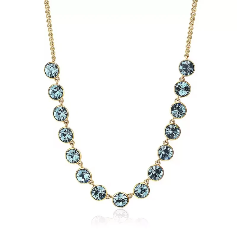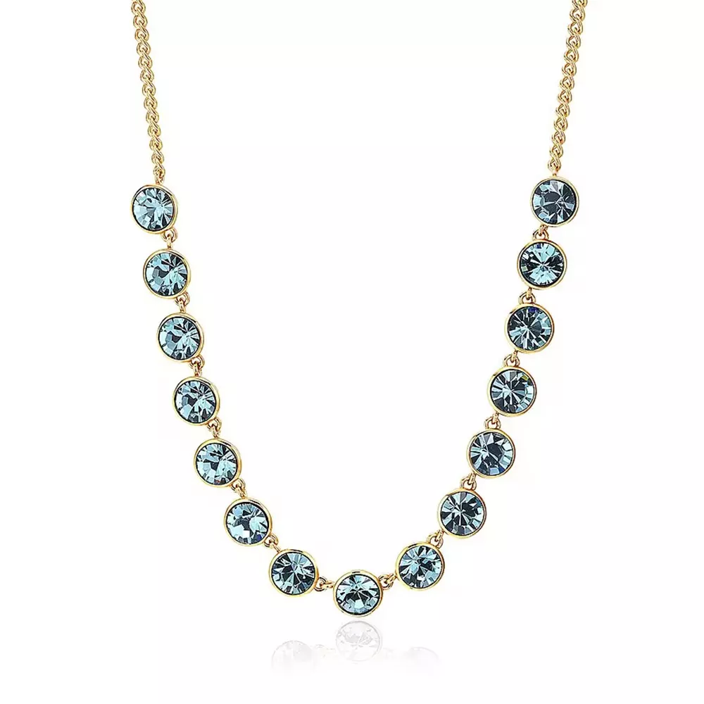 Ženska ogrlica brenda Brosway iz kolekcije Symphonia. Izrađena je od nerđajućeg čelika zlatne boje, dodatno ukrašena sa safirnim kristalima.