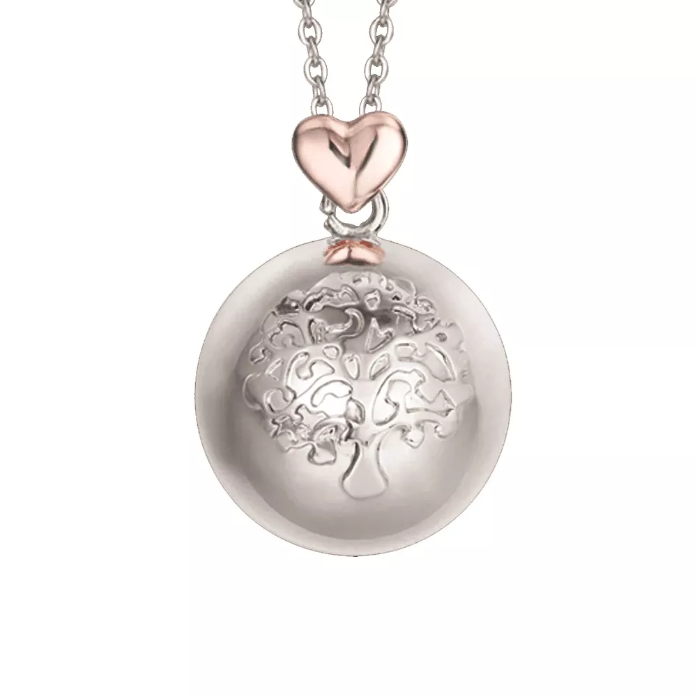 Kolajna od čelika, metalna sfera sa Drvetom Života i ružičastim srcem. Dužina: 90 + 10 cm, prečnik privezka: 2 cm. Luca Barra Angel Caller ogrlica ima privezak koji sadrži malu kuglicu unutra koja proizvodi blagi zvuk pri svakom pokretu. Ovo je jedan od uobičajenih poklona koji se daju budućim majkama, kao znak zaštite za njih same i za život koji nose u sebi. Položaj privezka, koji odmara na majčinom stomaku, omogućava nerođenoj bebi da sluša blagi zvuk kuglice koji prati majčine pokrete. Harmonija Luca Barra Chiama Angeli ogrlice, zajedno sa delikatnošću zvuka koji emituje, služi za zaštitu majke i bebe tako što "zove" anđele blizu njih.
