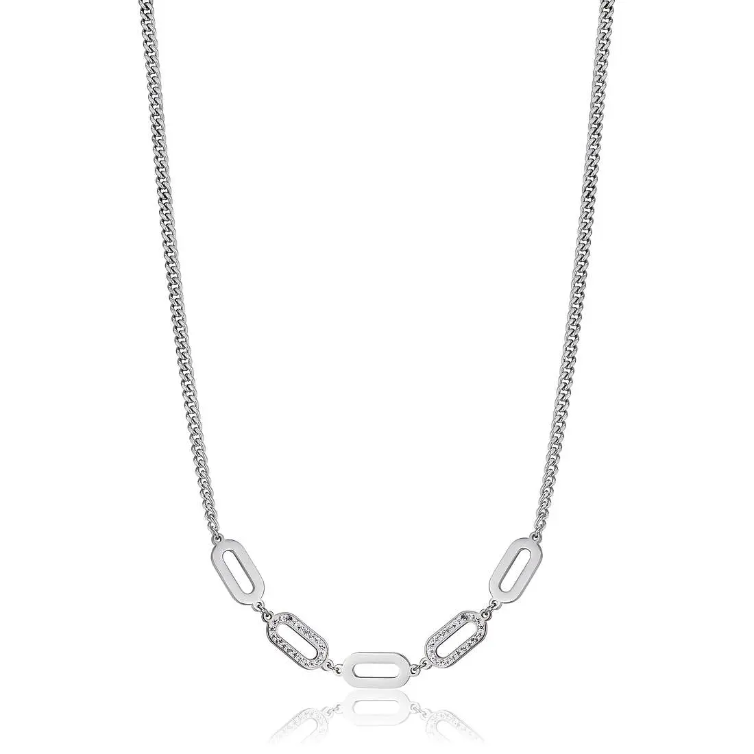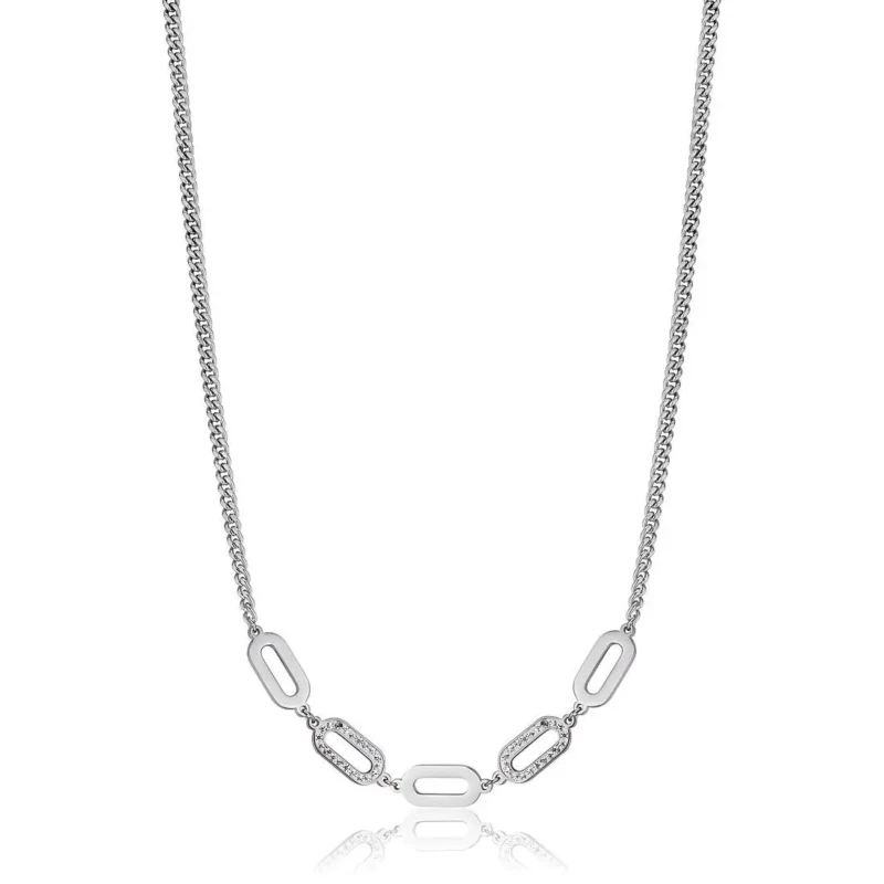 Ženska ogrlica brenda Luca Barra. Izrađena je od hirurškog čelika u boji srebra sa interesantnim detaljima koji čine ovaj model atraktivnim i pogodnim za svakodnevno nošenje. Dužina ogrlice 40+5cm.