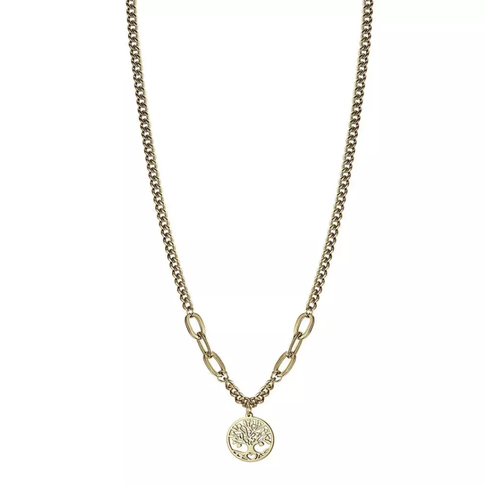 Ženska ogrlica brenda Luca Barra. Izrađena je od hirurškog čelika u boji žutog zlata sa priveskom u obliku porodičnog stabla koji čine ovaj model atraktivnim i pogodnim za svakodnevno nošenje.