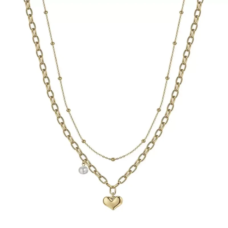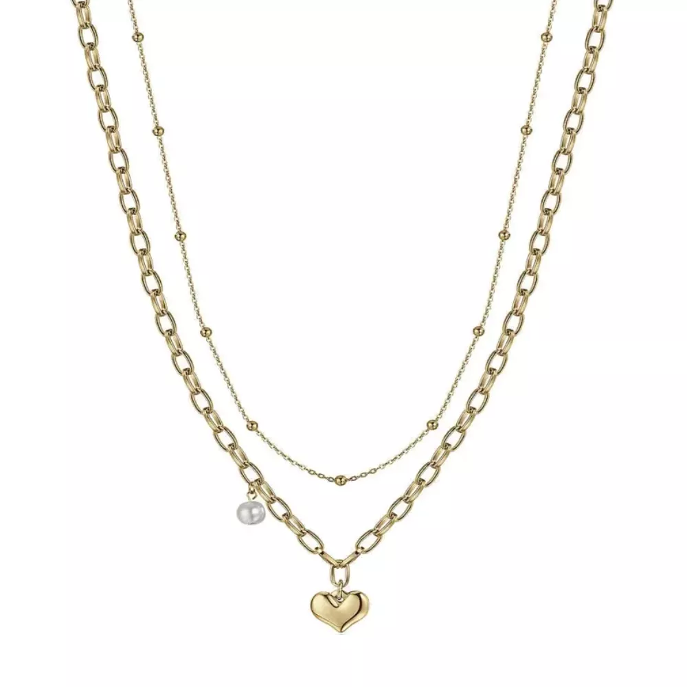 Ženska ogrlica brenda Luca Barra. Izrađena je od hirurškog čelika u boji žutog zlata sa priveskom u obliku srca koji čine ovaj model atraktivnim i pogodnim za svakodnevno nošenje.