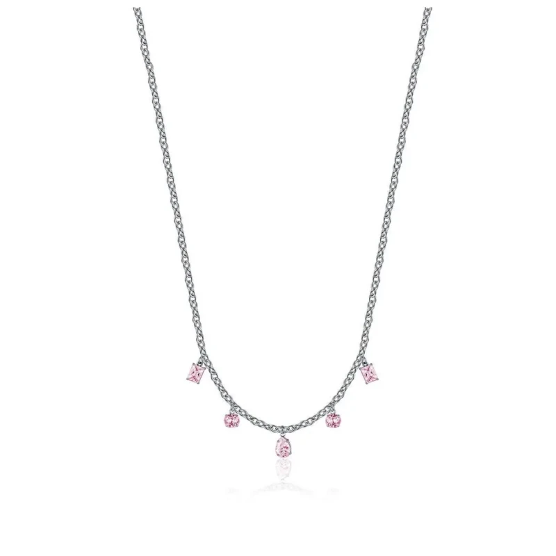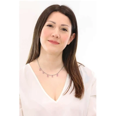 Ženska ogrlica sa malim kristalčićima u rozoj boji.