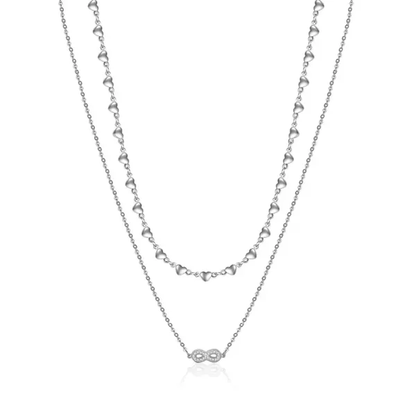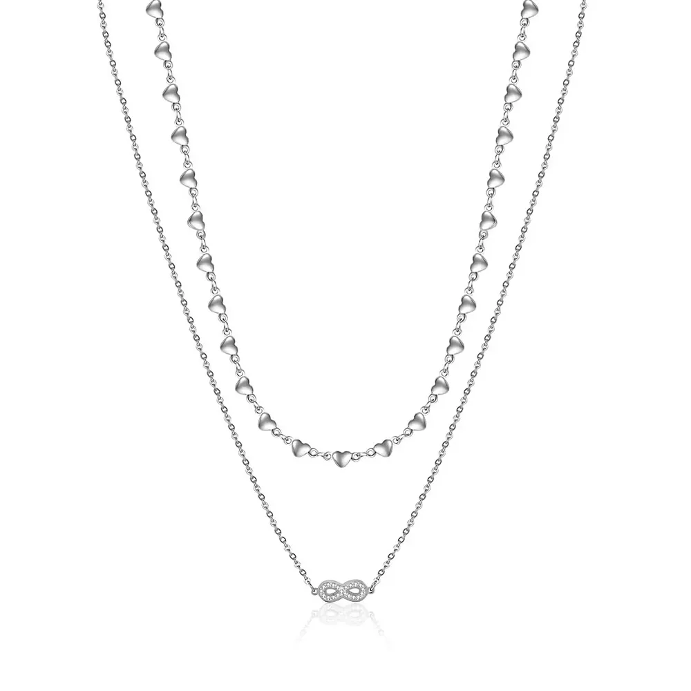Ženska ogrlica brenda Luca Barra u dva reda od nerđajućeg čelika srebrne boje, sa priveskom.