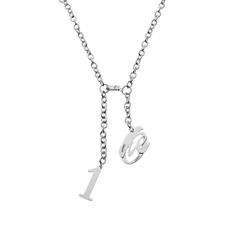 Ženska ogrlica brenda Fibo Steel, modernog je dizajna. Karakteriše je čelični lančič sa dva priveska, koji doprinose atraktivnosti ovog modela.
