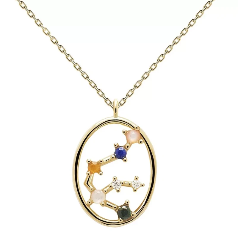 Prelepa ogrlica PD Paola je izrađena od srebra i 18k pozlate, i savršen je dodatak za svaku modernu ženu koja želi da izrazi svoju individualnost i jedinstvenost. Sadrži drago kamenje: tigrovo oko, rozenkvarc, biser, malahit, lapis lazulit, i kristal u beloj boji. Savršen spoj minimalističkog dizajna i sofisticiranosti, ova ogrlica je idealna za sve prilike, od svakodnevnog nošenja do svečanih događaja.