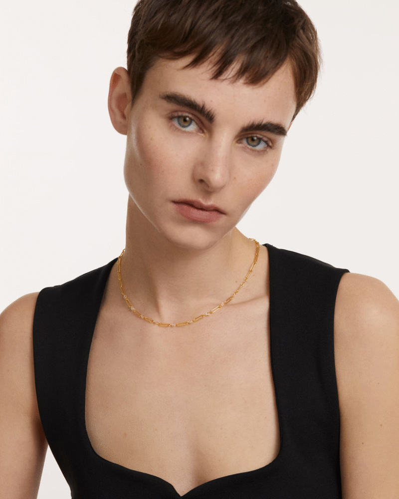 Srebrni lančić Pd Paola sa 18k pozlatom od karika i cirkona.