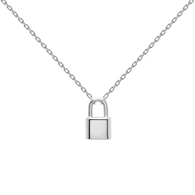 Srebrna ogrlica sa priveskom u obliku katanca.