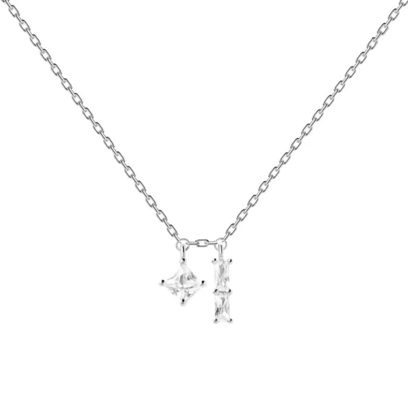 Diskretna ženska ogrlica brenda PD Paola izrađena od srebra sa priveskom ukrašenim cirkonima.