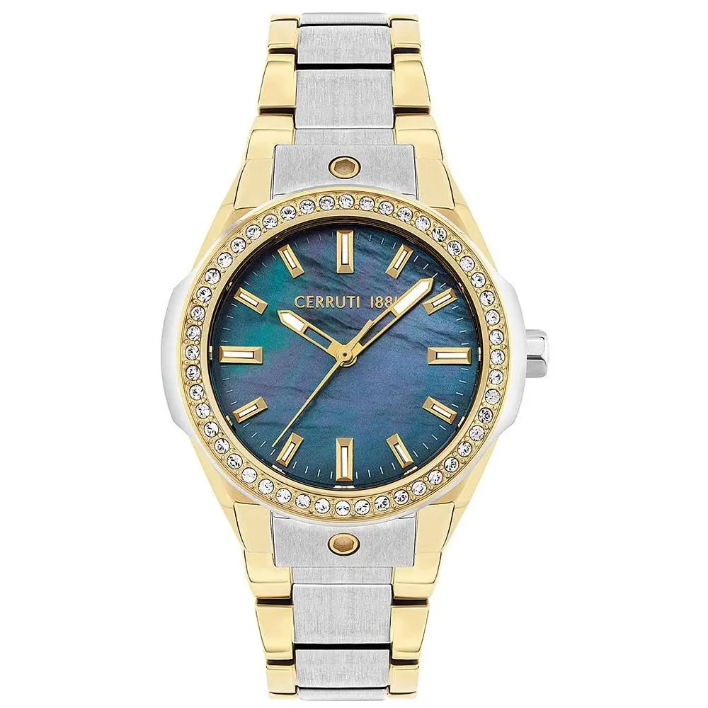 Ženski ručni sat brenda Cerruti u kombinaciji zlatne i srebrne boje, napravljen od čelika. Brojčanik mu je u plavoj boji. Veoma elegantan, upotpuniće svaku vašu odevnu kombinaciju.