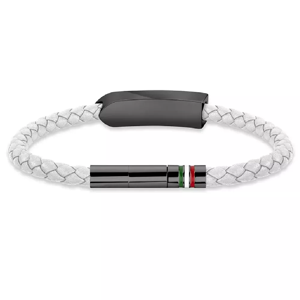 Kožna pletena muška narukvica u crnoj boji sa Italijanskom zastavom i Ducati logom.