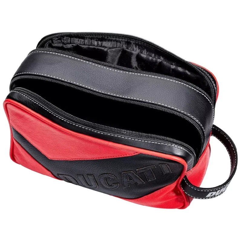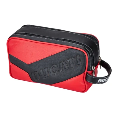 Muški neseser italijanskog brenda DUCATI izrađen od kože u prepoznatljivoj crno crvenoj kombinaciji sa dve pregrade. Posebno se ističe i poznati DUCATI logotip .