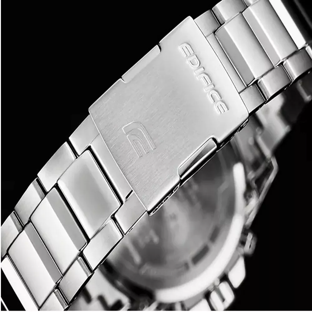Moderan Casio muški ručni sat iz kolekcije Edifice opremljen je bluetooth tehnologijom tako da ga u svakom trenutku možete upariti sa vašim smart telefonom. Ovaj model ima solarno napajanje a samim tim i duži životni vek baterije. Prepoznatljiv je po robusnom kućištu na kom je smešten brojčanik crne boje. Narukvica je izrađena od kvalitetnog čelika u boji srebra. Ovaj model sata će savršeno upotpuniti Vašu svakodnevnu odevnu kombinaciju.