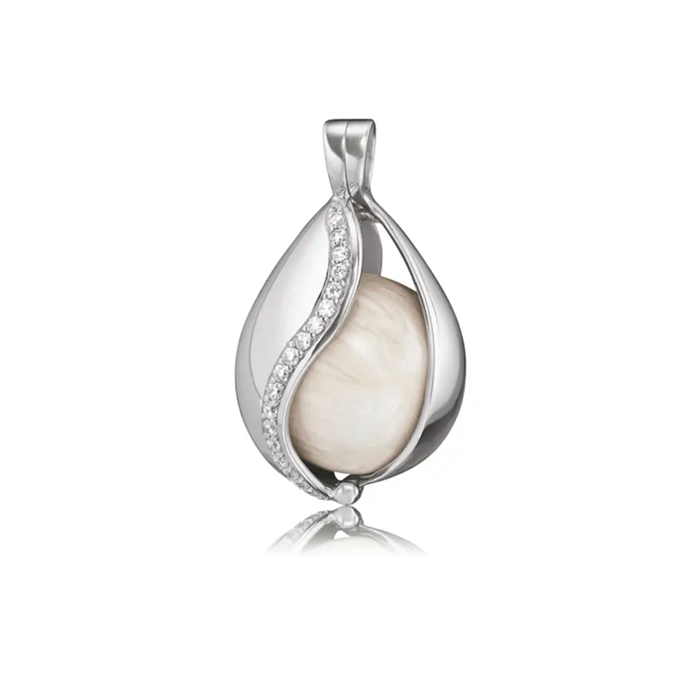 Privezak za ogrlicu sa zvučnom kuglicom ,srebrni sa cirkonima