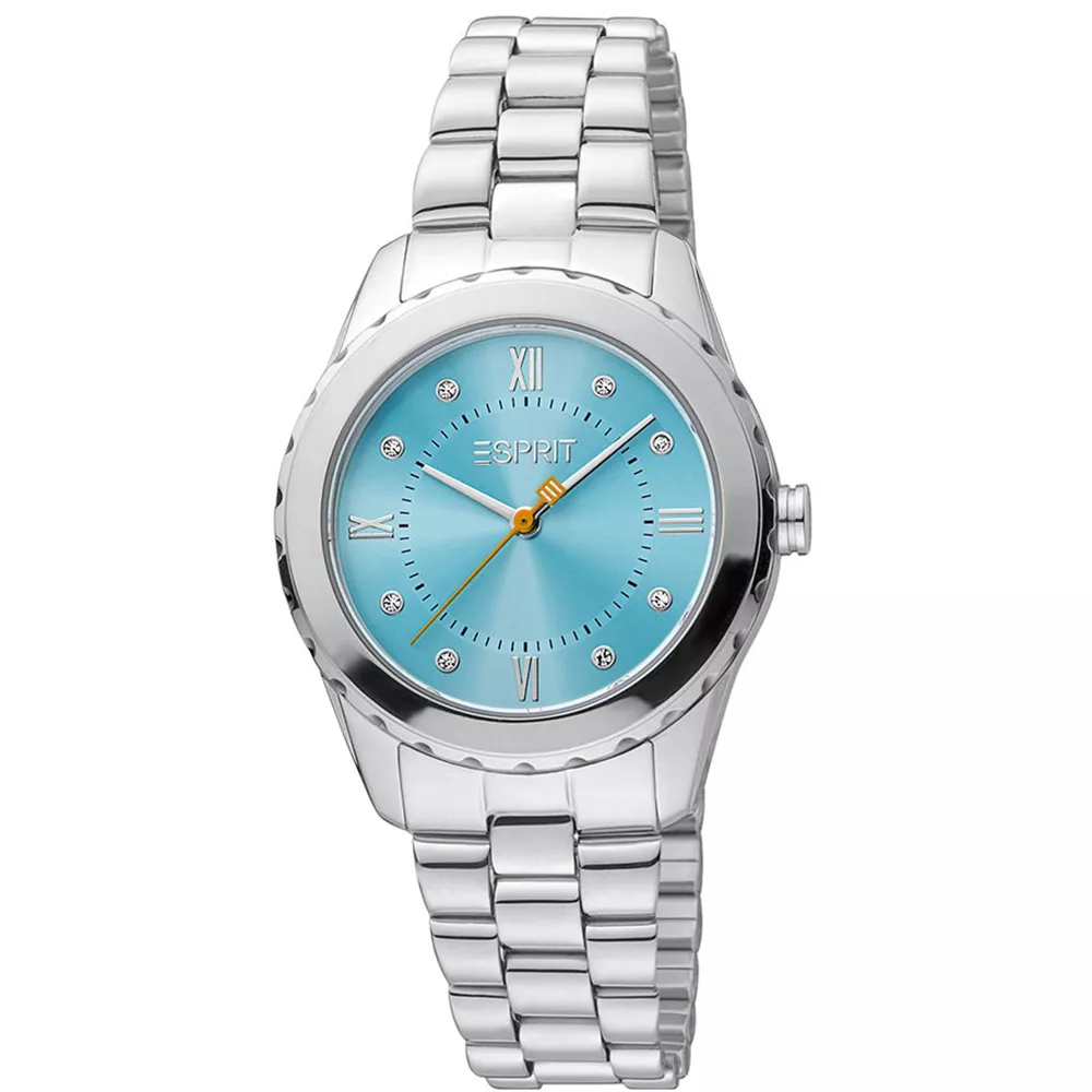 Ženski ručni sat na srebrnoj narukvici i brojčanikom u svetlo plavoj boji.