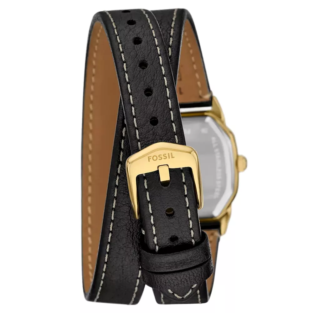 Fossil ženski ručni sat Inspirisan klasičnim dizajnom iz arhive, Harlow donosi sofisticiranost prošlih vremena u savremenom ruhu. Ovaj bezvremenski model odlikuje se osmostranim kućištem u zlatnom tonu, teksturiranim brojčanikom u boji slonovače i elegantnim dizajnom sa tri kazaljke. Crni kožni kaiš koji se obmotava dvaput oko zgloba dodaje modernu notu ovom elegantnom satu.