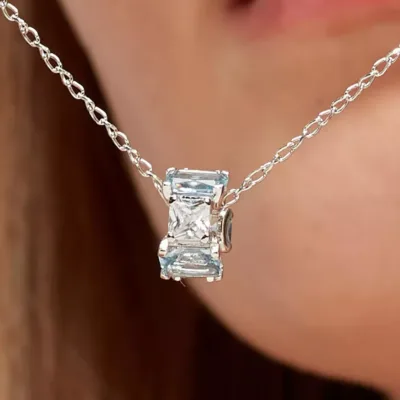 Privezak od srebra sa svetlo plavim baget cirkonima i prozirnim kvadratnim cirkonima. Veličina: 11mm