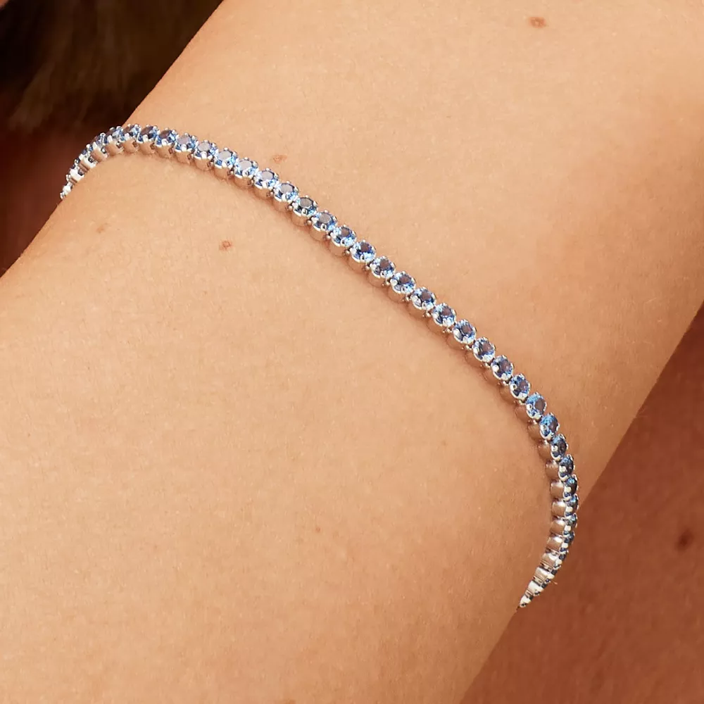 Brosway Fancy tennis narukvica od rodinisanog srebra, ukrašena kubnim cirkonima u nežnoj safirno-plavoj boji. Elegantna i profinjena, ova narukvica pruža klasičan sjaj sa suptilnom dozom boje, idealna za svakodnevno nošenje ili posebne prilike.
