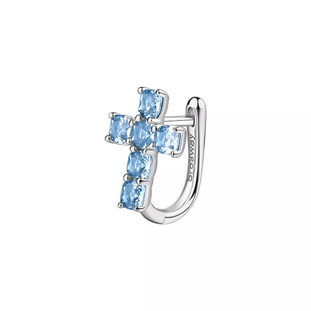 Brosway Fancy jedna minđuša od srebra sa krstićem sa svetlo plavim kvadratnim cirkonima.Veličina minđuše 14mm