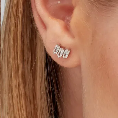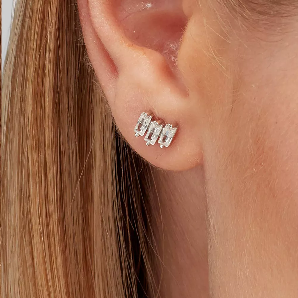 Brosway Fancy jedna minđuša od srebra sa tri providna baget cirkona veličine 7mm