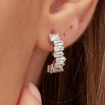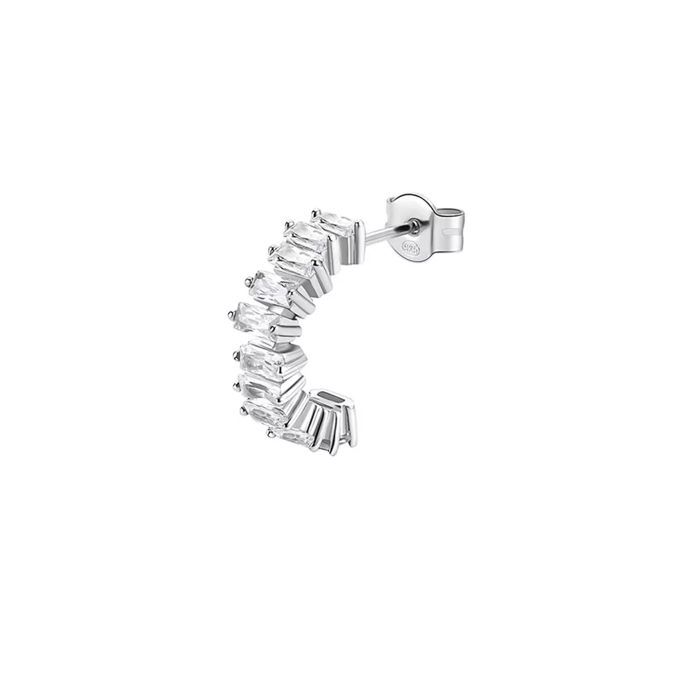 Jedna Brosway ženska minđuša od srebra iz kolekcije Fancy polukružnog oblika sa providnim ovalnim cirkonima. Veličina minđuše 18mm